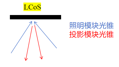 从后续投影镜头的设计来说,LCoS照明模块接收到的光展量大于或等于LCoS投影模块发出的光展量,确保投影模块所用到的光线锥内均有光线,如下所示,